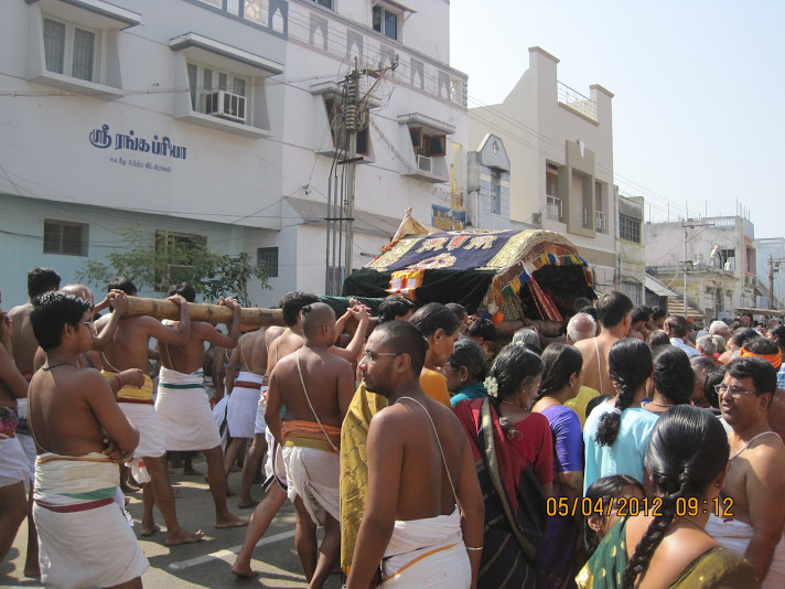 Today , Panguni uthiram is the most important day of srivaishnavas . Swamy Ramanuja’s prays to Lord Ranganathar and Peria pirattlar (Sriranga nachiar at Srirangam . Lord Namperumal (Sri Ranganathar) and Peria pirattlar (Sriranga nachiar) are seated together. Lord (naMperumAL) is standing majestically as usual and more beautiful and graceful today due to the compassionate looking pirAtti and is enjoying the beauty of Her Lord without taking Her eyes off Him even for a second This was the right opportunity for LokaAcharyar Swami Ramanuja to ask for favors from our DIVINE PARENTS. He submits to the LOTUS FEET through his divine outpourings Gadyatrayam. Swamy Ramanuja worshipping them, submits his deep fear of samsara (association with the body in a cycle of births) and begs the Lord to save him. Swamy Ramanuja surrendered his all to the Lord and begged Him to be his sole savior. In the Three Gadyaas, Swamy Ramanuja’s prayed swamies innermost feelings of deep devotion to the Lord break all restrictions and flow freely towards the Lord and His consort. These are prima facie a spontaneous outburst of devotional experience and not coldly labored compositions. The inner voice of the devotee addresses Sri and the Lord and they do reply clearly through the same inner voice. In the Saranagati gadya, Swamy Ramanuja first addresses Sri as the mother of the Universe, as his own mother, and as the loving consort of his Lord, and seeks her intercession on his behalf. This is itself a saranagati addressed to the mother. Happy at being addressed this, Sri replies ‘So be it’; “let your prapathi bear the proper fruit of being accepted as a devoted servant” The commentators have it that this assurance is not only for the Acharya but for all his spiritual progeny. The boon that Lord granted to Swamy Ramanuja applies to his spiritual heirs. It is worth noting that once he gets the assurance from Sri of her sure mediation, he addresses himself directly to the Lord seeking Him as the sole savior. The LokAcharya then addresses the Lord speaking of His incomparable glory, “His immense wealth, His power, His retinue, His divine weapons, His beautiful ornaments, His loving consorts, of His infinite compassion and other admirable qualities words which are a rhapsody of devout fervor which can come only from the very depth of a realized soul. Swamy Ramanuja holds out prapathi as the highest message he had for his followers.The Sriranga gadyam is a shorter piece and is essentially the same as the Saranagati gadyam. It is addressed directly to Sriranganatha. ” Sriranganatha! mama natha! namostu te” are the words of the acharya. To the seeker of salvation who has taken to the path of Prapathi, it is essential that he should spend his time in devoted service of the lord; in serving his devotees; by meditating on Him and singing His praise; by repeatedly uttering the Dvaya mantra (this is an enjoyable and sweet pastime). The acharya gives expression to all these, briefly, in confidence to the lord at Srirangam. His intention is that this short text may be repeated easily in the presence of the Lord by devotees intent on the fruit prayed for. Check this clip which takes to LORDS LOTUS FEET ..