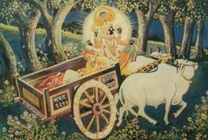The Lord ordered him to be ready with the cart in the night. The devotee accordingly obeyed and waited with the cart for the Lord. As promised, Lord left the temple, got into the cart and HE HIMSELF drove the cart. The Lord who acted as “PARTHASARATHY- (Charioteer to Arjuna in the Mahabharata war once again took the reins and drove the chariot).The Supreme Lord who by His mere glance, controls the entire Cosmic manifestation, made the devotee relax and Himself drove the cart for the sake of His devotee. Overnight they reached Dakore. ( A place near Ahmedabad ).
