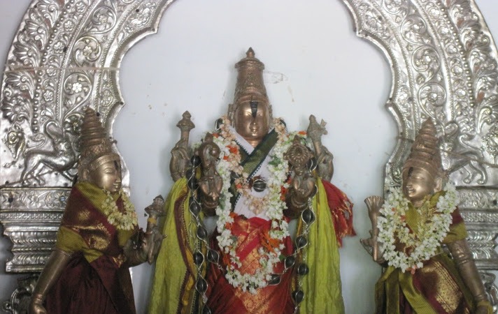 The utsava vigrahams which are replica of the Moolavar are housed in a nearby temple. Perumal seen with chathur bhujam(4 hastams) holding Padmam and Gadam on the upper right and left Thirukaigal (hastams) respectively. The lower 2 hastams hold sankhu and Chakram on the left and right side respectively.