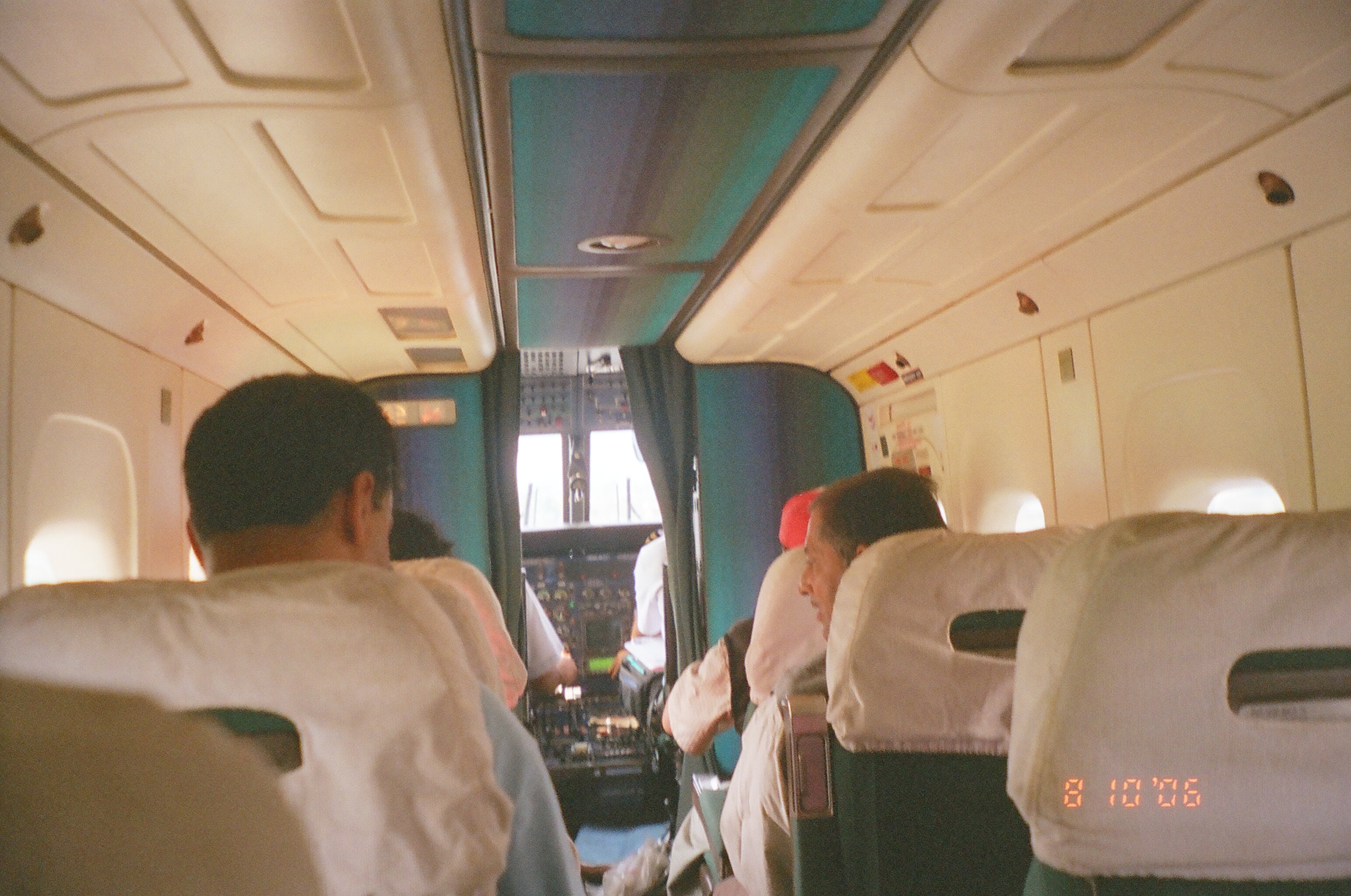 Our turn to board the flight came at 11 A.M. Thanking the Lord, with tears rolling , we boarded the 20 seater propeller flight with window seats for everyone at 11 A.M . We’re on the plane. It’s moving. 18 passengers plus the flight attendant squeezed into these little seats. No overhead baggage compartment. The flight attendant passed out some sweets and cotton for people to plug their ears. The captain is still checking out the RPMs. We are about to take off and we chant loudly GOVINDA …….We’re in the air now. It’s a smooth flight.