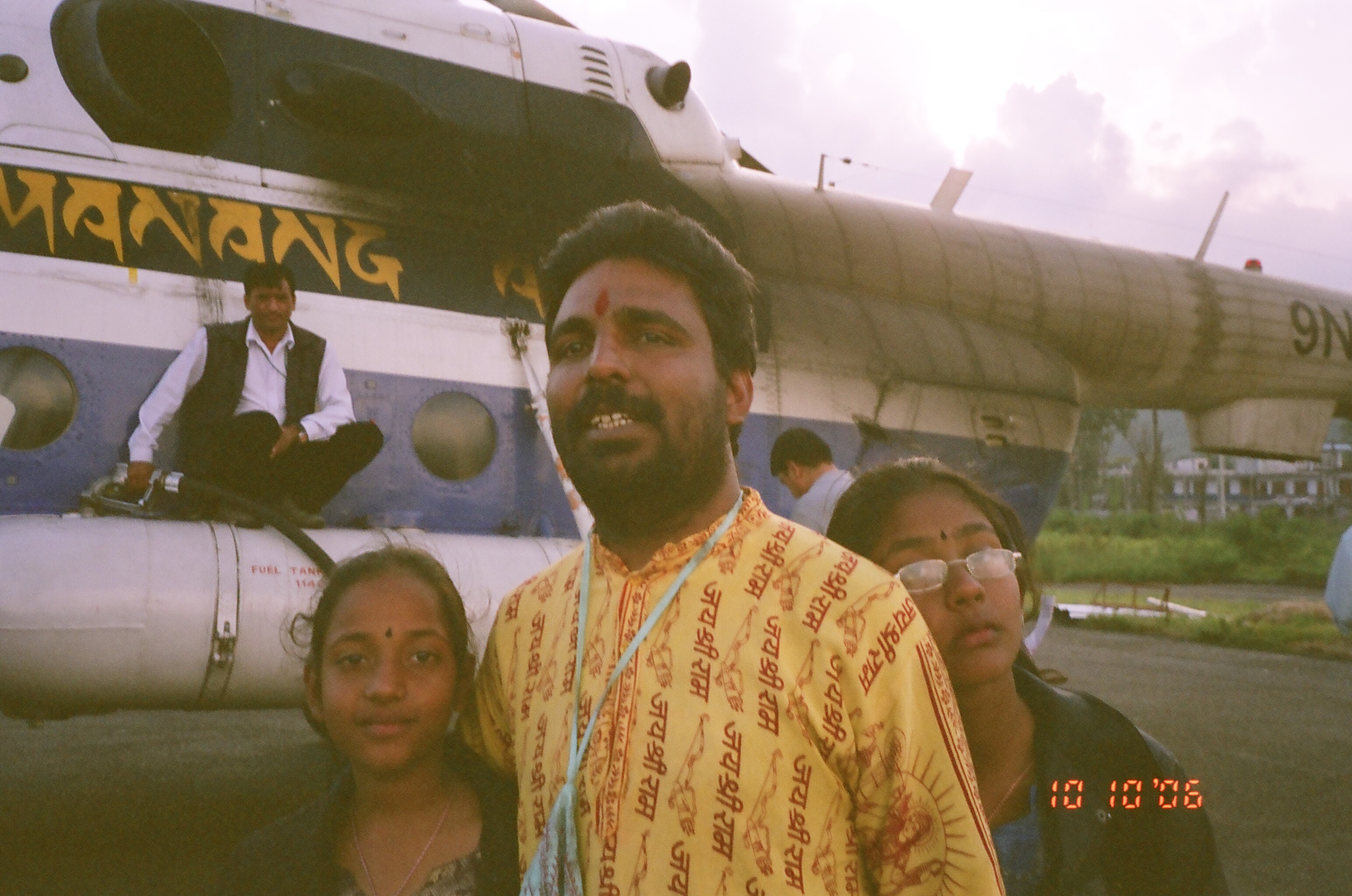 The very rare privelage of travelling in a helicopter was being fullfilled may be I felt.   Adiyen was continuously chanting Maha mantra and the moment we left the copter, 2 devotees who hail from England  approached me and offered Prasad saying that they had done Pournami pooja at Muktinath, a day before we reached the holy shrine. I was happy to learn that they have migrated to Kashi and having undertaken penance, they are simultaneously doing research on Vedas.