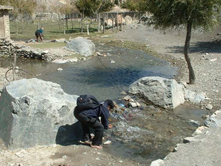 We are now trekking near the banks of Gandaki river. Which  rises beyond the Himalayan ranges, probably in Tibet, and flows (in the north-south direction) into Nepal, There is a lake at the source of the Kali-Gandaki , called Damodar-kunda on the Nepal . The lower Gandaki is well known as Mukti-natha-kshetra, also called Saligrama-kshetra. The sacred stones are largely found on the banks of Kali-gandaki near Tukche, between the two mountains Dhavala-giri and Annapurana. Damodara-Kunda is  considered as  Saivite place of pilgrimage by Nepalis. This is the punya kshetram where saligrama deities  are found within the Nepal territory to the fortunate souls . As advised by my father the children learnt the sloka  by heart  supposed to be chanted while we trek the route .The sloka  goes like this with meaning explained below