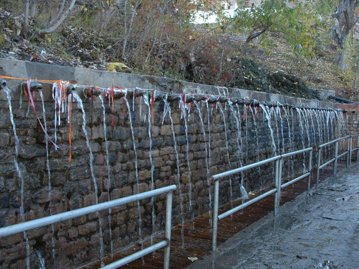 Perumal’s smiling Thirumugam is very enchanting and we could not take our eyes off .  We recited 108 divya desa naamavali in front of Perumal and recited Thirumangai Azhwar’s pasurams on this divya desam.  In ecstasy, I remembered Thirumangai mannan’s pasurams on Naimisaaranyam which is full of repentance and started reciting the same in the temple.  My children braved to sing Annamaya Kirtans amidst the few piligrims.  Adiyen thought of everyone associated with me and prayed the Lord to bestow moksham and best devotional service  on them .  Adiyen prayed to the Lord to give me another chance to visit this shrine  again and give another opportunity to visit all the divya desams . The  Nepali security emphasized  that the temple was 500 years old and it would be closed during severe winter (i.e. from October to February) every year.  Due to time constraint, we left the temple reluctantly after taking few photographs.  I had heard that Westerners aren’t allowed in the temple of Muktinath, but that’s not true. It is said that Badrinath sent Muktinath to this place, high up in the mountains.  I overhear a foreigner saying  that anyone who takes the trouble to visit that place will get liberation. Adiyen , however, did not pray for liberation. Rather, Adiyen  prayed for pure devotional service.  A five minute walk down the temple towards left led us to a place where we can see 2 wonders :- First, fire coming from water and fire coming from stone.  This fire is emitted continuously and has to peep into a small opening to see the same.