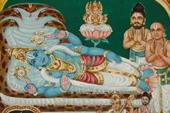 The deities of Lord Adikesava Perumal and Lord Padmanabha are consecrated in such a way that they face each other. Lord is lying on his snake couch and one has to have darshan through three doors.