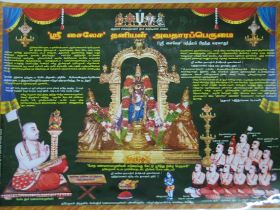It should be noted that Swami MamunikaL excelled as the disciple of none other than the famous SriSailesha (Tiruvaimozhi pillai), SrisailEsha erected a temple at Azhvar-thirunagari for Swami Ramanuja and installed Sri Ramanuja’s idol, which had been presented to Sri Madhurakavi Azhvar and lay buried at the foot of the famous Tamarind tree.