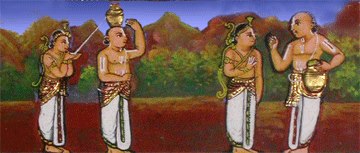 The thief obliged and both of them waited in the same place where the thief accosted the boy the previous day. Suddenly the thief exclaimed, “Look, here they come!” However, the Brahmin could not see any one. Stricken with remorse, he said, “Swami, when You decided to give darasinam to a thief, why not me?