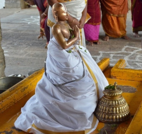 Swami Mudaliandan is also glorified as the “paaduka” and “Tridandi” of Swamy Ramanujar. When Swamy Ramanujar embraced Sanyasasramam, he did not leave Mudaliandan and Kooratazhwan whom he considered as his Tridandam and Pavitram respectively.