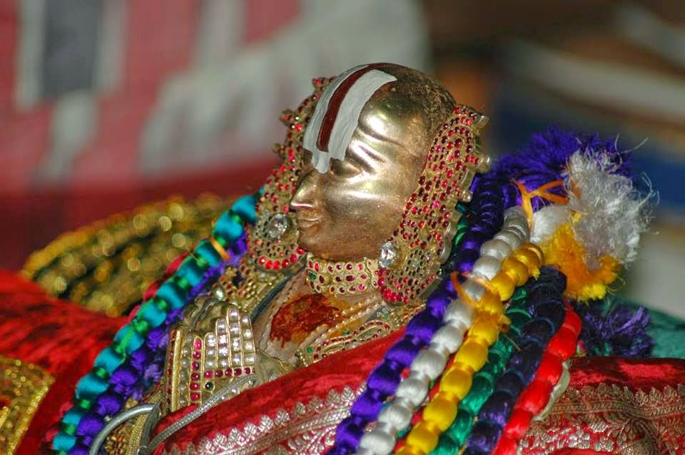 ThOzhappar of wide fame belonging to the KanthAdai vamsam with joyful respect asked o NampiLLai once ” Are You THE teacher of the Universe (LOkAchAryan)? ” out of respect for his extraordinary scholarship and humility . From that day onwards , that name of LokAcchAryan stayed with NampiLLai as a mark of his srivaishnava guNa visEsham .Later, NampiLLai’s sishyar, Vadakku- Thiruveedhi PiLLai gave the name of LokaachAryan to his son out of his own deep reverence for his AchAryan . This son – who became a very famous AchAryan later – came to be revered as PiLLai Lokam Jeeyar .