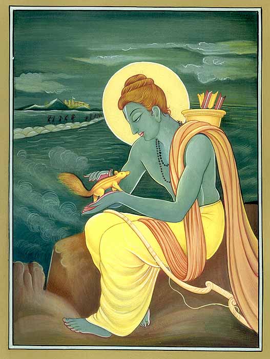The joy derived by the squirrels in Lord Ramas kainkaryam was multifold . Soon there were many squirrels jumping in the seashore and leaping near the rocks to contribute their might in squeezing as much as sand possible. This they were doing watching the divine beauty of Lord Rama under ecstasy . They some how managed to draw the attention of Lord Rama in their endeavours .