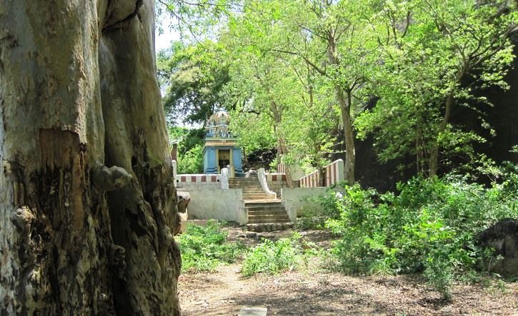 mountains adjoining thick, dense forests. They found a dilapidated mandapam (ceremonial hall), and decided to retire for the night.