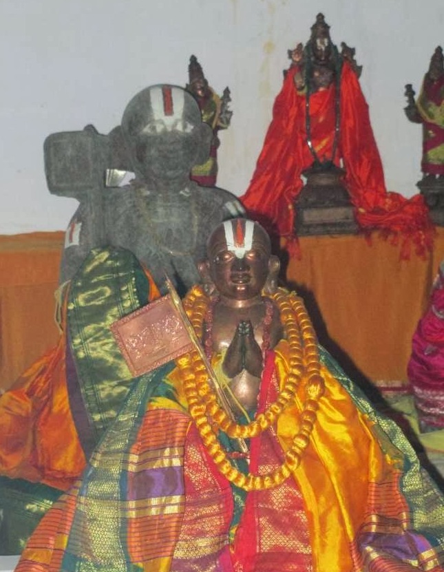 The lessons began, and as instructed by Nanjeeyar, Nampillai obediently sat on the floor, while the student sat on a chair. The classes was conducted with lot of respect to the student . As the classes progressed, the student felt very bad about being seated on a chair, while his young teacher sat on the floor. One day , he got up with tears and fell at Swamy Nampillais lotus feet like an uprooted tree with tears for his foolish behaviour .He pleaded Swamy to be seated on chair .