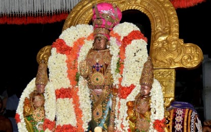 The Lordships are taken in procession accompanied by huge temple elephants , Nadaswaram ,Kolattam along with other festive customs .