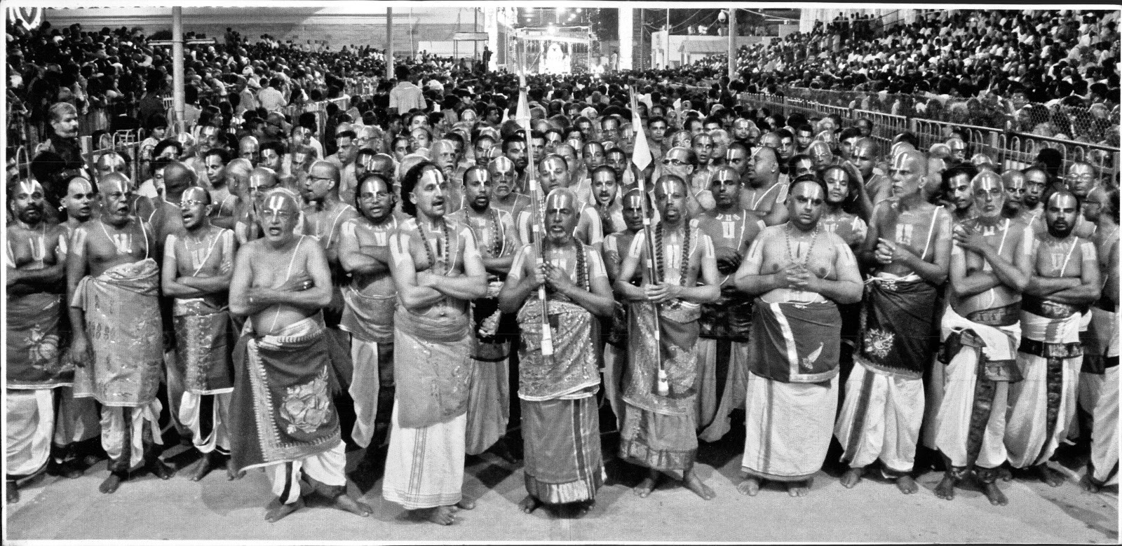 Having exhausted with their patience, the priests from the temple came out in search of Anna and hurriedly collected the pots of holy water from him and rushed back to the temple to complete the worship according to established protocol .