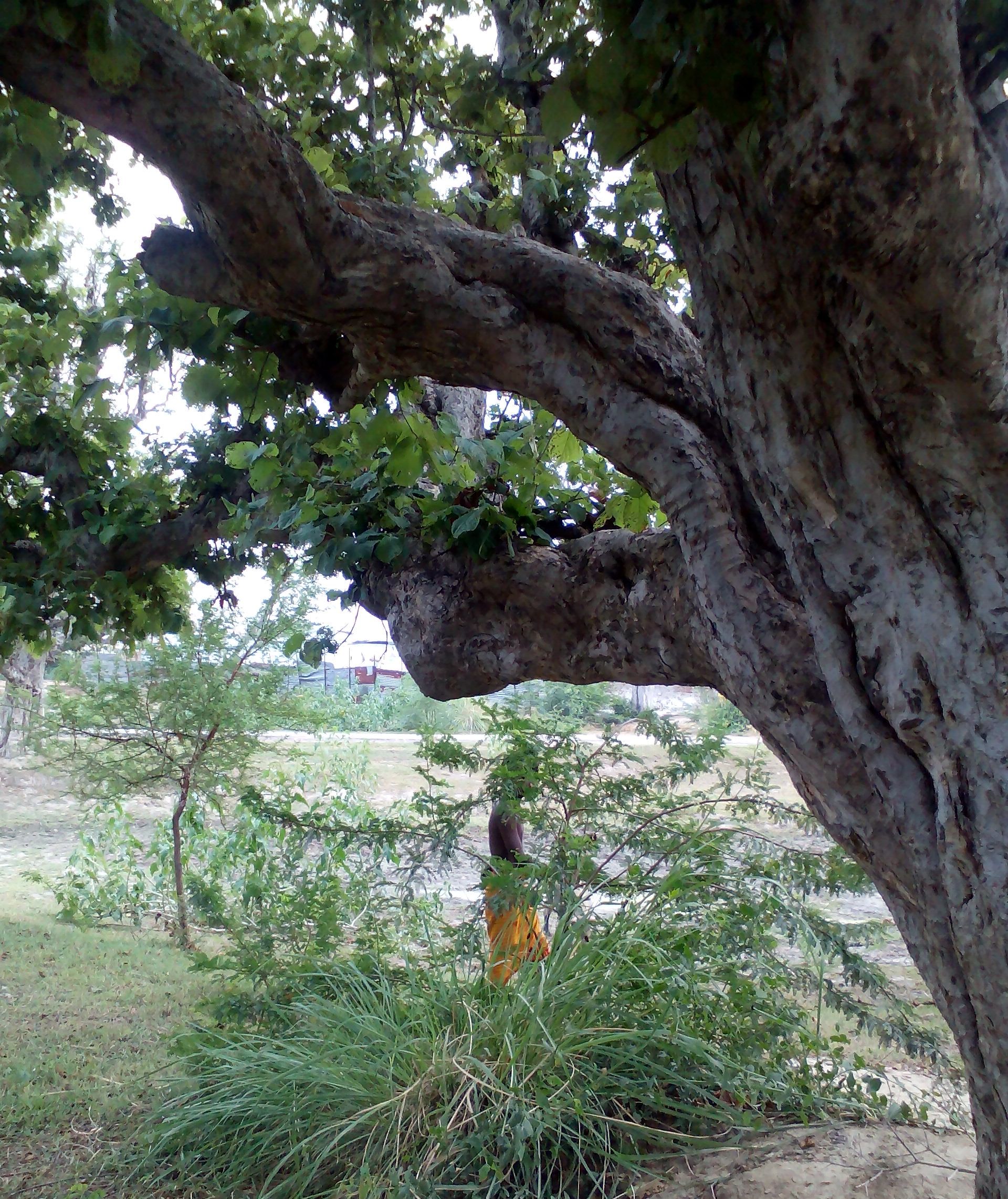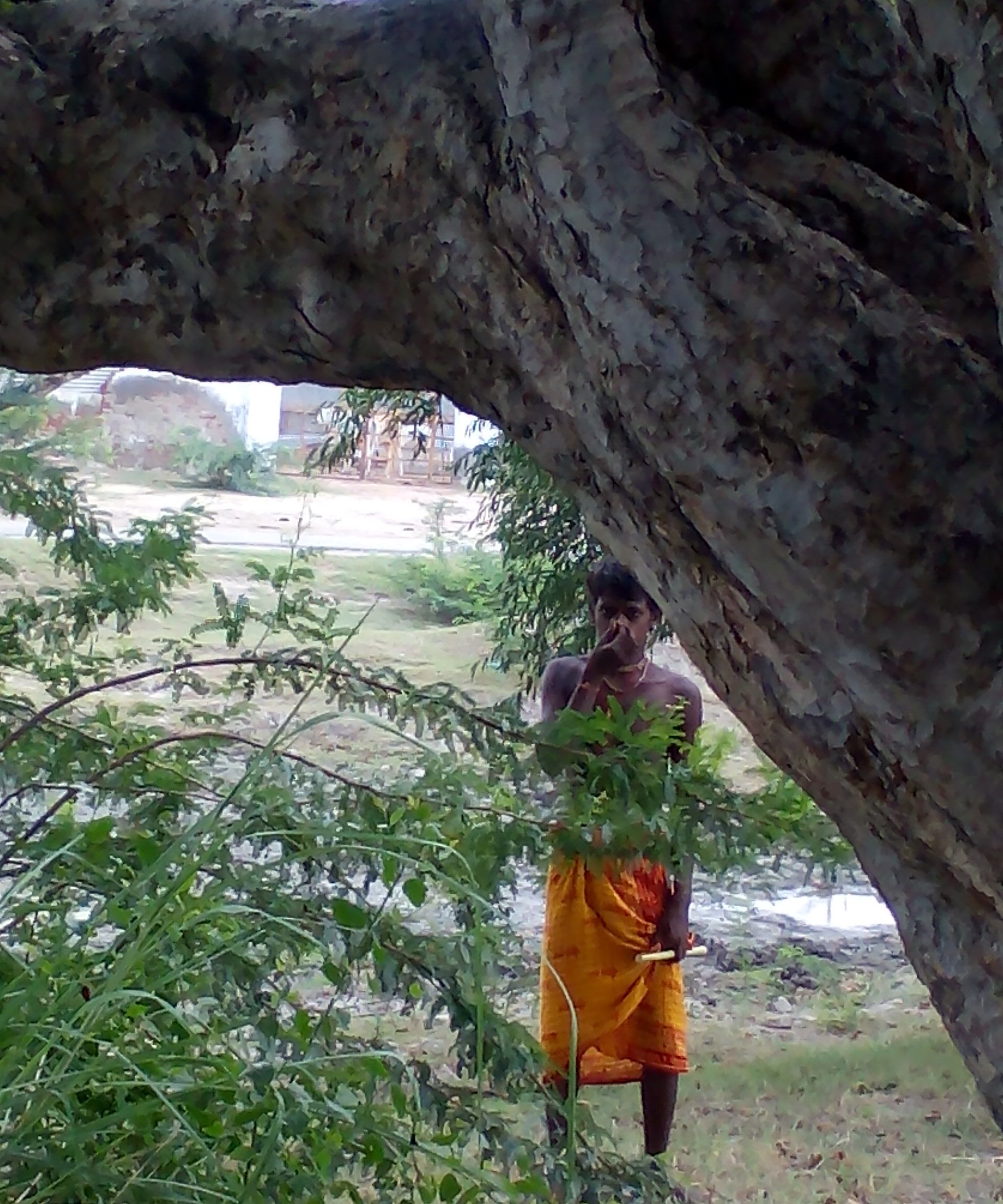 Our chant of the Holy name somehow attracted a dark skinned young boy who suddenly appeared under a tree  smiling at us . He was nowhere around when we searched .