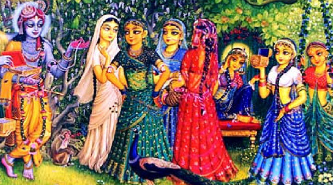 The Astha-sakhis display the zenith of spiritual love for Radha and Krishna. No one can equal or exceed the love they bear for the Divine Couple. To increase the transcendental ecstasy of Radha and Krishna, the Parama-preshta Gopis show partiality; sometimes they favour Krishna, sometimes Radha.
