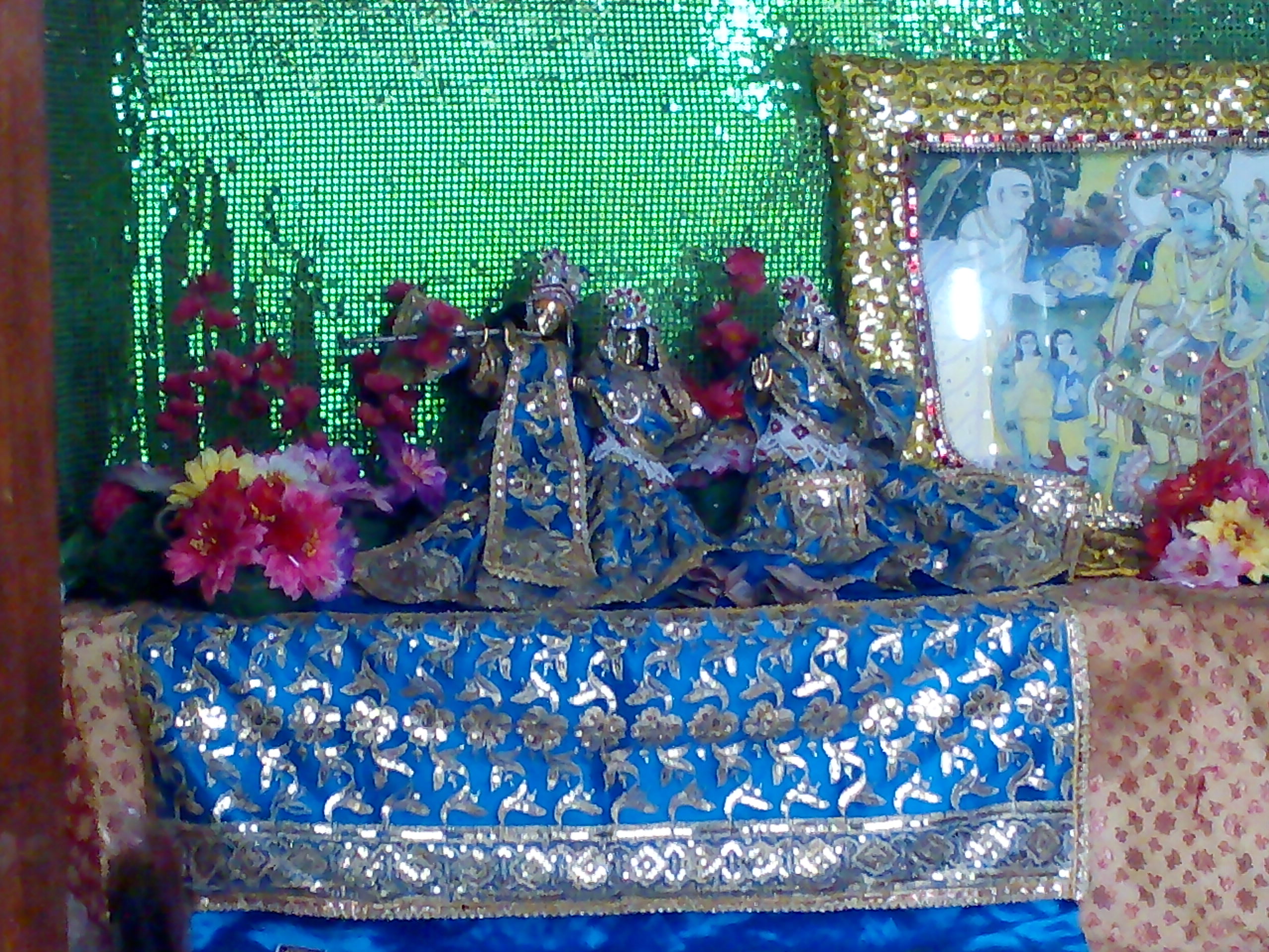 WE had the opportunity to offer sweets offered to Radharani at Barsana on Dasami day as part of Chappan Bhog to Chitra sakhi. OUr god brother ,Sri.Rajagopalan had arranged all articles for abhishekam (milk,curd,honey, ghee, flowers, dress etc.)