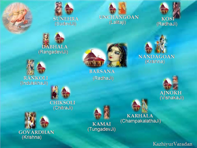 Adiyen offers dandaavats to all other devotees like Krishna Premi Swamigal, ISKCON Goswamis , Sri Vallabha sampradaya bhaktas , Sri Nimbarka sampradaya devotees and all the great devotees for propagating the importance of these places. All these Ashtasakhi temples are around Barsana and can be covered within half a day or one day by car if we start early.