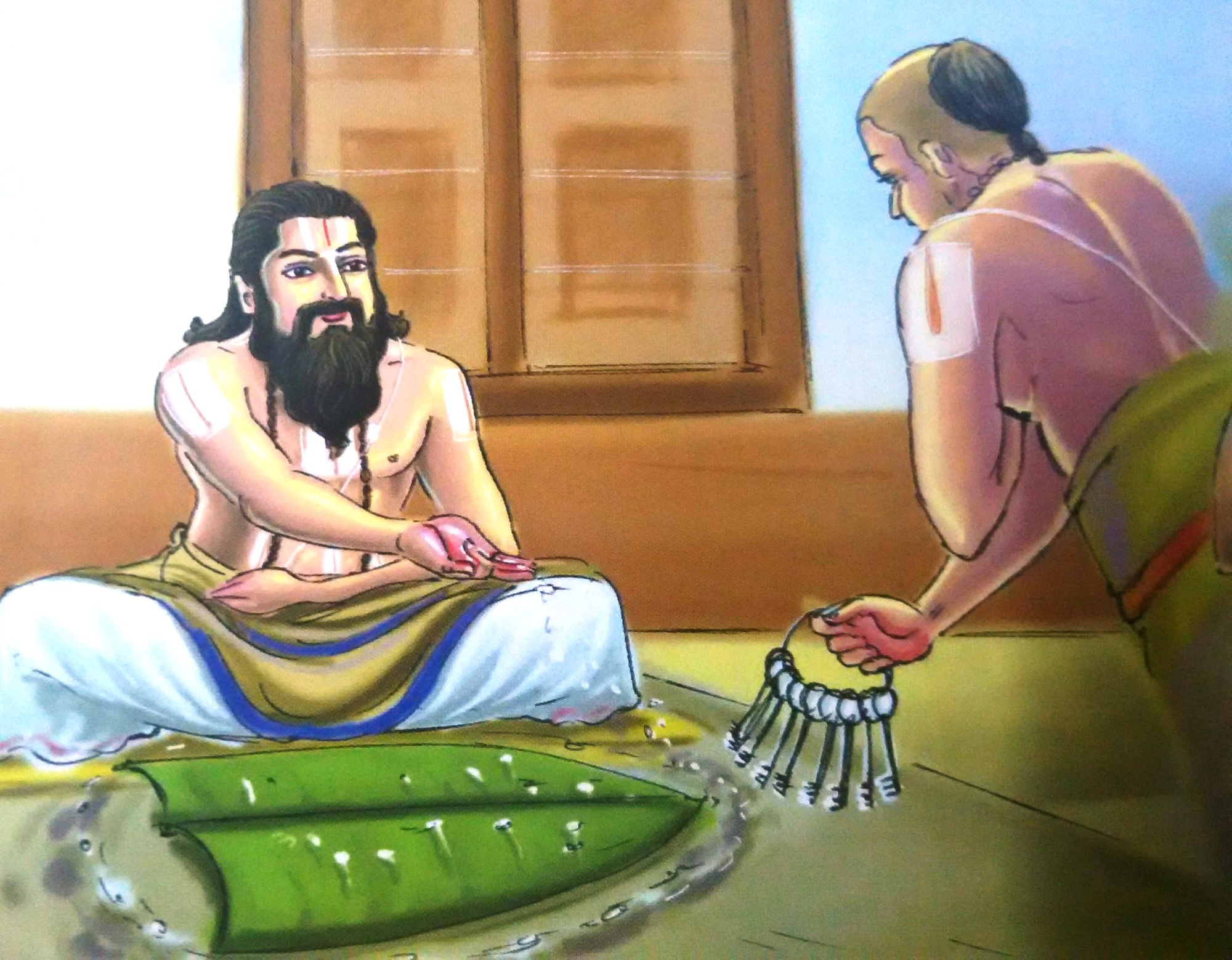 Kooratathazhwan who could read Swamy Ramanujar’s desire participated in the 11th day ceremony and when he was asked as to whether he was satisfied he replied in negative. When Periakovil nambi offered him to give anything for appeasement, Koorathazhwan asked him to hand over his temple responsibilities.