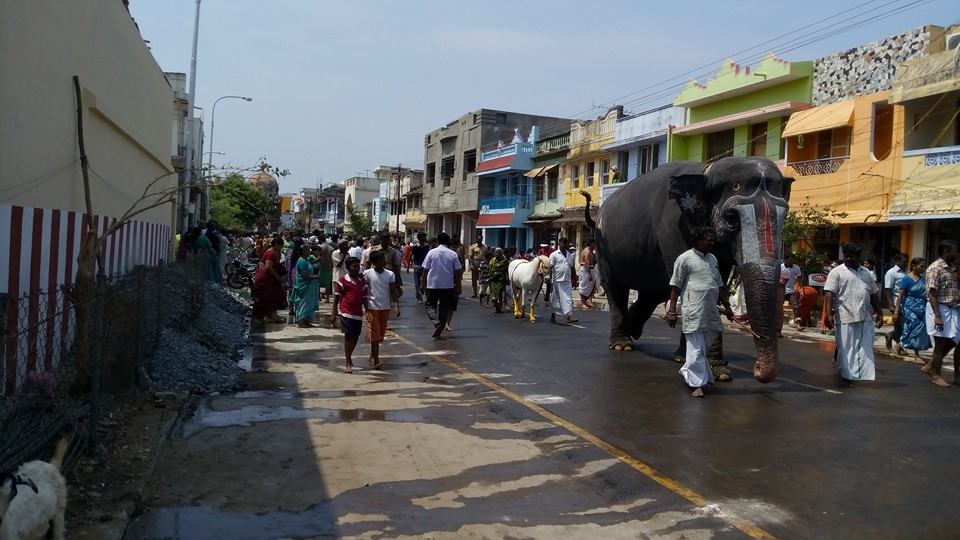 The Utsavam takes place at the royal court located at the western entrance of the great Temple of Lord Ranganatha.