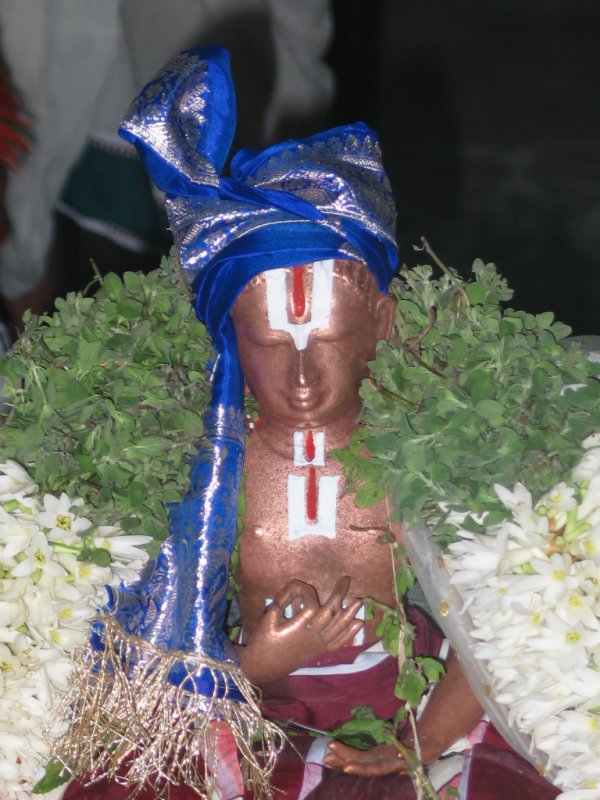 Sri Azhagiya Manavala Perumal (Manavala mamunigal) belonged to Azhwar thirunagari and was direct disciple .He got his initiation from Srisailesar. Sri Azhagiya Manavala Perumal was Srisailesar’s favourite student who later on took sanyasam and came to be known as Swamy “Manavala Maamunigal” who rendered EEdu vyakhyanam in the presence of the processional deities in Srirangam (Azhagiya Manavalan/Namperuamal) for one full year .