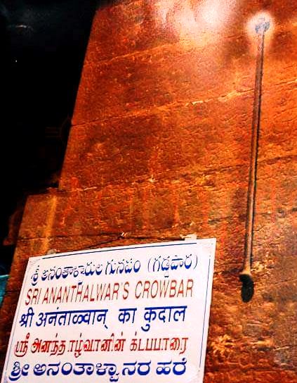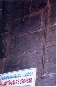 Many will share their experiences having darshanam with moist eyes . However , Very few are aware that when we walk inside the temple , to the right side of the Main entrance we can see a crowbar tied to the wall which has a glorious past .