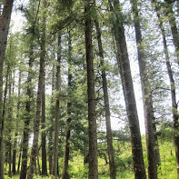 After replenishing ourselves, we continued onwards our 2 kms trek journey. This particular settlement was much better compared to other isolated places. We continued trekking and once again left with no one around. WE could not locate any path way and didn’t know which side to take-left or right!! WE took the wrong path and after some time, we saw a person down the hill and screamed for help. He informed that he is the temple priest and he was also going to Bhavishya Badri. Our joy knew no bounds. He accompanied us for some time, and as we couldn’t cope up with his lightning speed, he gave us directions and left. He said that the temple was only one km away . WE were now on a bigger plain surface. Surrounded by snow clad high mountain peaks on all sides, sun rays falling through the tall eucalyptus trees and gentle breeze full of medicinal properties accompanied by Dhauli Ganga flowing as a small stream , green vegetation in the surrounding places and the sound of cuckoos as if welcoming us , we were in ecstasy looking at the marvelous creation of the Lord. We have seen this in movies but now we are here experiencing them with our own eyes but for deers and peacocks.