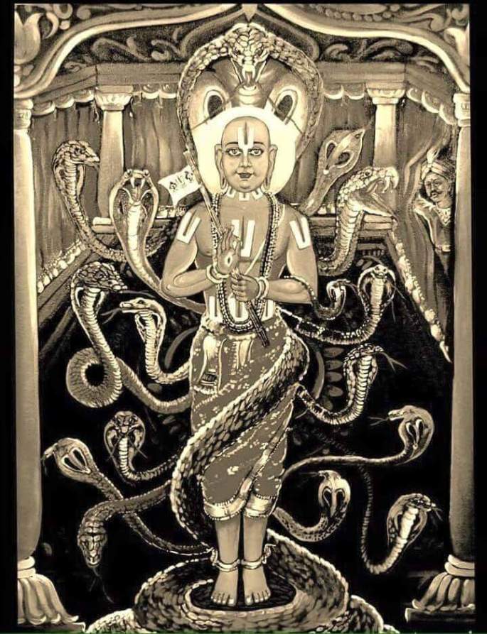 Swamy Ananthazhwan ………………… and Acharyar Nadadoor Ammal Let us recollect their devotion to Acharyar and the great Lordships on this wonderful day . Acharyar Varadaguru the great Acharya had the deepest bhakti to Lord Varadaraja of Kanchipuram One night when he was serving ” LORD” in an ecstatic mood, the priest brought very hot milk to the Lord as offering . Acharyar Varadaguru was deeply distressed that such hot milk would burn the tender tongue of the Lord! He stopped the priest from offering the hot milk and began cooling it down until it was warms enough to be offered. The Lord himself was moved by the Vatsalya bhava of Varadaguru and called him ‘Amma’ – my mother! From then onwards Varadaguru became Nadadoor Ammal. After this episode, in a dream one night, Lord Varadaraja commanded Ammal to erect a Mantapam for His Vasantotsavam. Accordingly Ammal fulfilled the Lord’s desire, just as a mother would fulfill the wishes of her son in spite of difficulties. Another glorious pastime remains to be cherished . Once Ammal and his disciples undertook a pilgrimage to Tirumalai hills. The graceful personality and humility of Acharyar attracted the people there.. A Chieftain Kandavaran was the leader of that Lada race . He was annoyed and irritated to see the crowd falling the the feet of Acharyar. He decided to disturb them. With his mantric power he made the disciples unconscious. Ammal meditated and chanted the Sudarsana maha mantra and his own composition ‘Hetipungavastotram’ and broke the spell. The angry Kandavaran called Ammal for a debate and when defeated surrendered to the Acharya himself. The benevolent guru not only excused him but also made him a Srivaishnava by offering him Panchasamskaras. With the money offered by Kandavaran, Ammal established a beautiful village and named it ‘Ladagraharam’ and continued his journey. On the way, the Lord himself came as a young brahmachari and appeased the hunger of the pilgrims with curd and rice. At the same time, there was a big commotion in the temple as the silver vessel with the naivedyam had suddenly disappeared. Lord Venkateswara Himself announced to the temple authorities that He Himself fed his dear Ammal and his disciples and that they should receive Ammal with all temple honours who will be arriving shortly . Swami Engalazhwan was Acharya of Nadathur Ammal , who was the direct disciple of Thirukkurukaippiran Pillan . All glories to our Acharyar Acharya Nadadoor Thiruvadigale sharanam Let us cherish the great devotee and most revered disciple of Swamy Ramanuja …………………. Ananthazhwan vaibhavam now The sacred TIRUMALA Hills consisting of seven peaks is considered to be seven-hooded. Blessed are the devotees who are fortunate to have his darshan . There are countless devotees who have served the LORD since ages . One such great devotee was Swamy Ananthazhwan an ardent disciple of Swamy Ramanuja . As per Swamy Ramanuja’s directives he served the LORD few hundred years ago .There are several pastimes of Swamy Anathazhwan with Lord Srinivasa . One divine pastime is memorable as Lord himself accepts to become Swamy Anathazhwans disciple . Knowing about the initiatives taken by Swamy Anathazhwan in organising the temple rituals with religious fervor few devotees decided to trek the hills and have darshanam of Lord and seek the blessings of his dear devotee too . The Srivaishnavites were walking from Srirangam and it was a very long journey .While ascending the Hills, coming from they were feeling tired and had to take some rest . Completely exhausted they were perplexed how could they complete their pilgrimage. All of a sudden a young lad appeared before them . The boy was appearing with divine tejas . With srivaishna Urdhva pundram he was almost looking like vamana avatara brahmachari . He offered his humble obeisances and said . Oh swamins ! Adiyen has brought some temple prasada for all of you .Kindly honor the same and please feel comfortable . The srivaishnavites being orthodox were initially impressed with the divine boy However one Elder person among the group wanted him to introduce his lineage and his Acharyar whom he was initiated . The divine lad he was , smiled at the simple question . He proudly replied that his name was Madhurakavidasa and his Acharyar was Swamy Anathazhwan who is serving Lord in all ways . It was his Acharyars instructions , he had walked down the sacred hills to handover the prasada coming to know about their visit . He further expressed that the Prasada was coming directly from the temple which was handed over to him by Swamy Anathazhwan to be given to them . A bit surprised , the elders said .. Oh swamin …… Its nice to know about your association to Swamy Anathazhwan . But we wish to hear from you about his glories . Can we hear your swamys Thanian ? as this a custom for the srivaishnavas to recite their Acharyars glories in the form of Thanians . The divine boy majestically recited the thanian about Swamy Anathazhwan in the seven hills which vibrated Akhilatmagunavasam ajnanatimirpaham Asritanam susaranam vande Anantharyadesikam” (I bow to Acharya Ananthazhvan, who is the repository of knowledge, mercy and wisdom, the one Acharyar who removes ignorance and is eminently eligible for surrender by disciples) They liked the divine lads confident answer . However the Srivaishnavas then questioned the youngster how his taniyan made no reference to Ananthazhvan’s relation to Swamy Ramanuja. The divine boy smiled and replied Swamins ! Actually there are two Thaniyans in praise of adiyens Acharyar Swamy Ananthazhvan, one referring to the glory of his divine personality and another referring to his connection with Swamy Ramanuja. And please listen to the second verse of the Thanian ‘Srimath Ramanujacharya Sripadamboruhadvayam Sathutha manga sandaryam Anantharyamaham Bhaje.. ( I prostrate before adiyens Acharyar Swamy Ananthalvan who is the lotus feet of Swamy 
