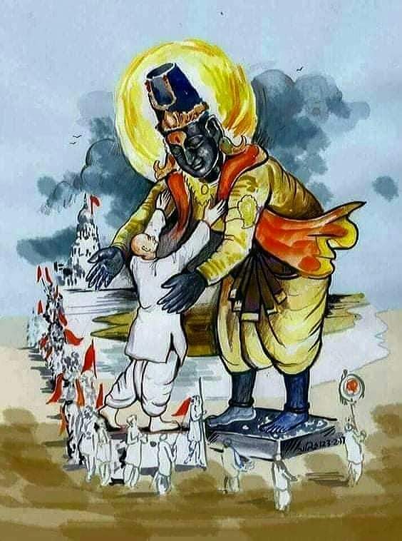 This strange procession – Ponnachi walking forward, Villidasan walking backwards, and the palanquin bearers and the retinue following Ponnachi – was nearing the temple gate. On the other side of the street, a very great saint was walking away from the temple followed by 1000 of his disciples.