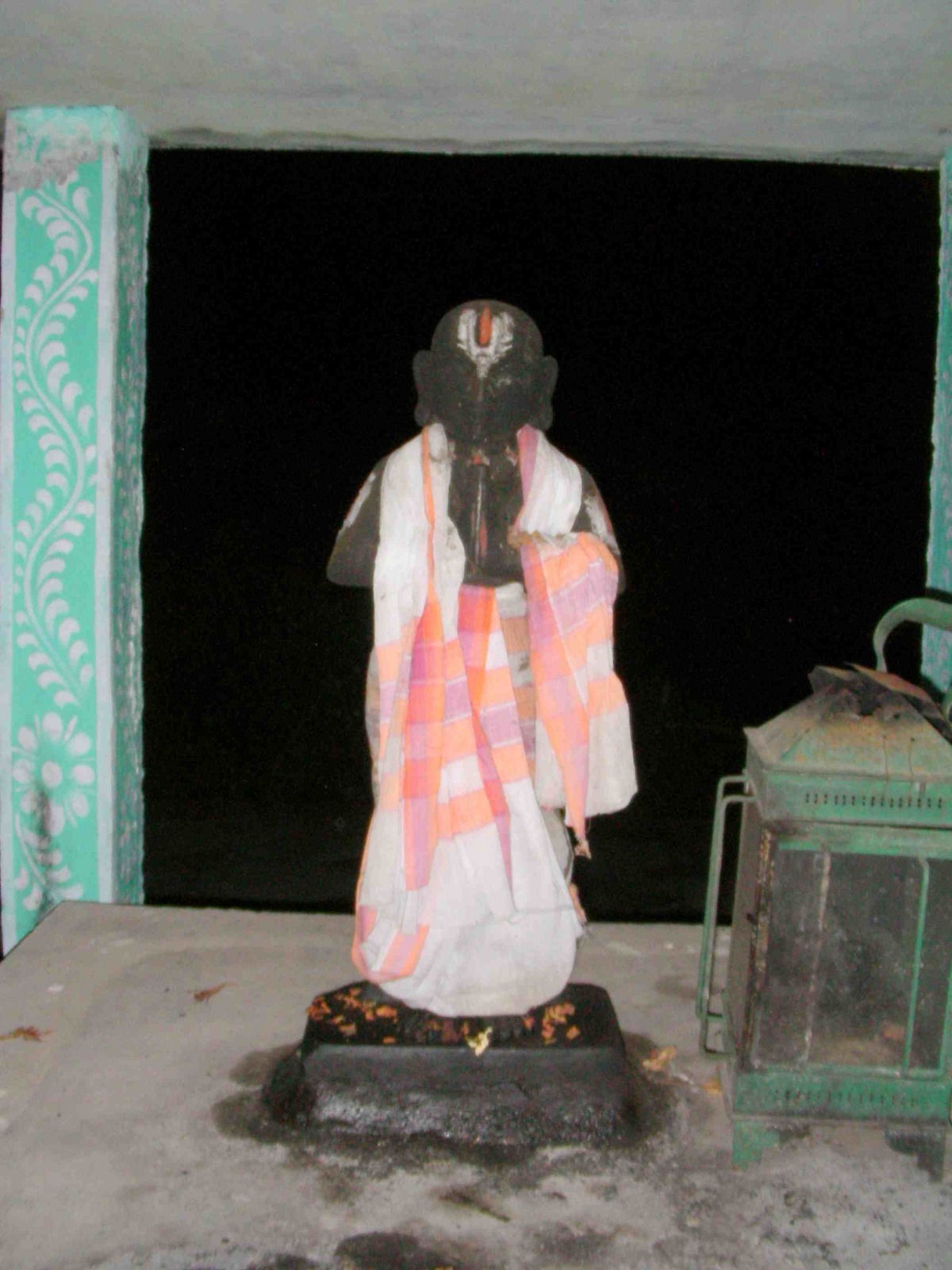 Meanwhile, we did pradakshinam around the temple chanting Harinaam . The temple is very small. In front of the garbagriham, towards our right, there is a deity of our Jagatha Acharyar, Swamy Ramanujar. .