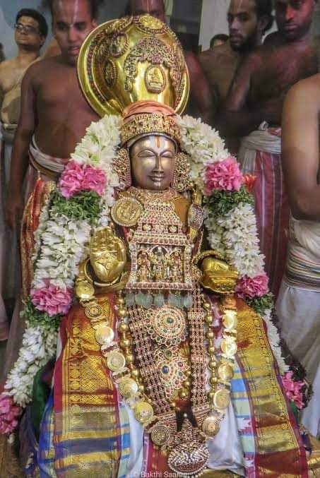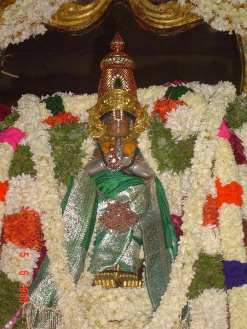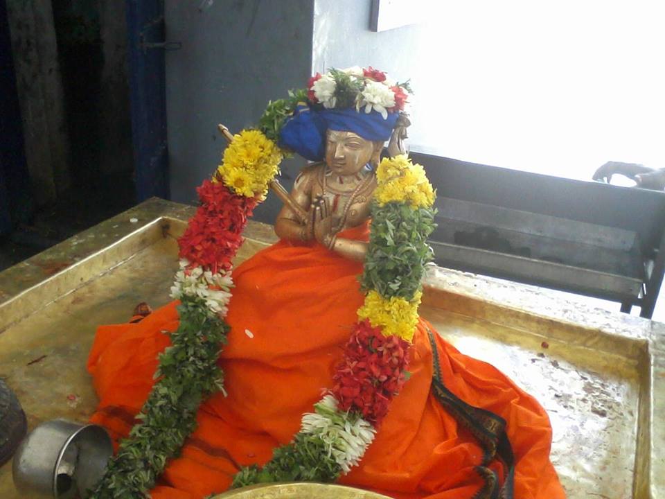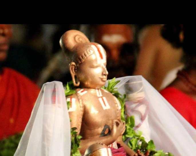 After many years one day a elder Vaishnava who was on a pilgrimage to Ayodhya observed a shining light emanating from a far off place .He followed the light and reached Thurukurugoor. As he enquired around the place , he was directed into the temple . He was surprised looking at the divine aura being emitted from the young boy and attempted to go near him .