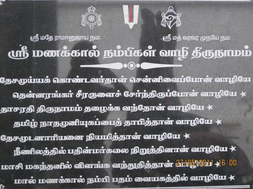 Knowing Govinda bhattar is at Kalahastee he requests his maternal uncle Swamy Thirumalai Nambhi to explore the possibilities of bringing Govinda back to srivaishnava fold . Thirumalai Nambhi proceeds to Kalahasthi and meets Govinda bhattar and quotes few verses of His Acharyar Alawandar’s Shostra Ratna Malai elucidating the importance of the Supreme personality Lord Sriman Narayana .
