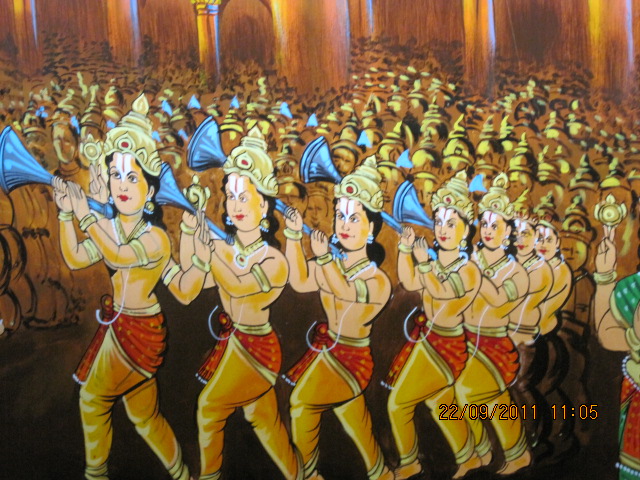 The divine voice said … my dear Purusottama Please go and gather our troupes again, and we two brothers, Jagannatha and Balarama, would go along to fight on the your behalf.