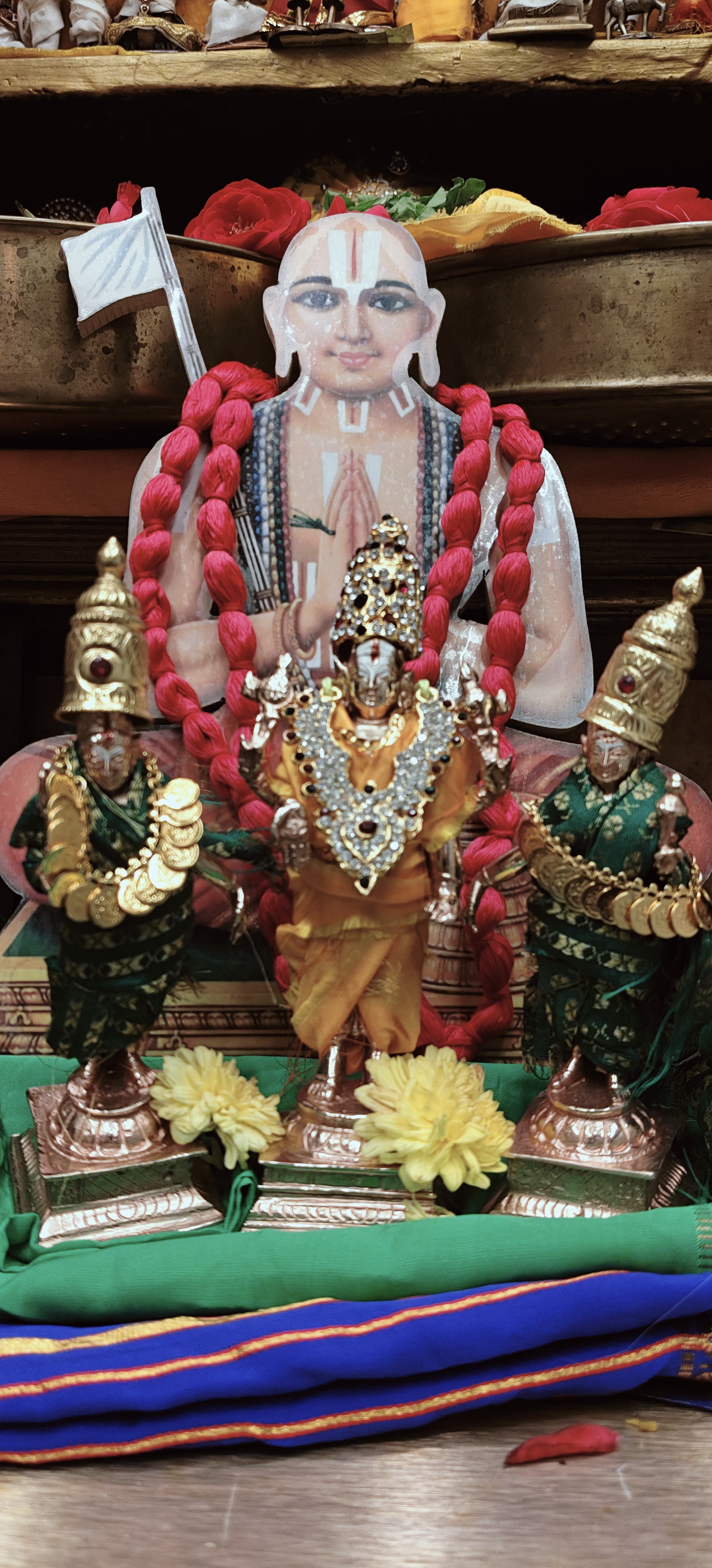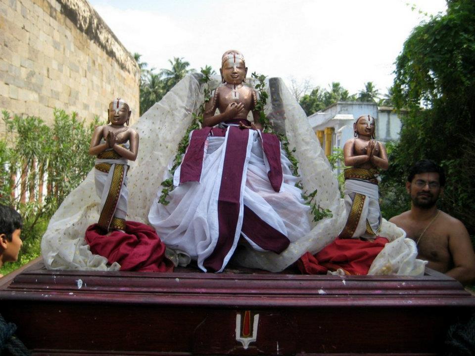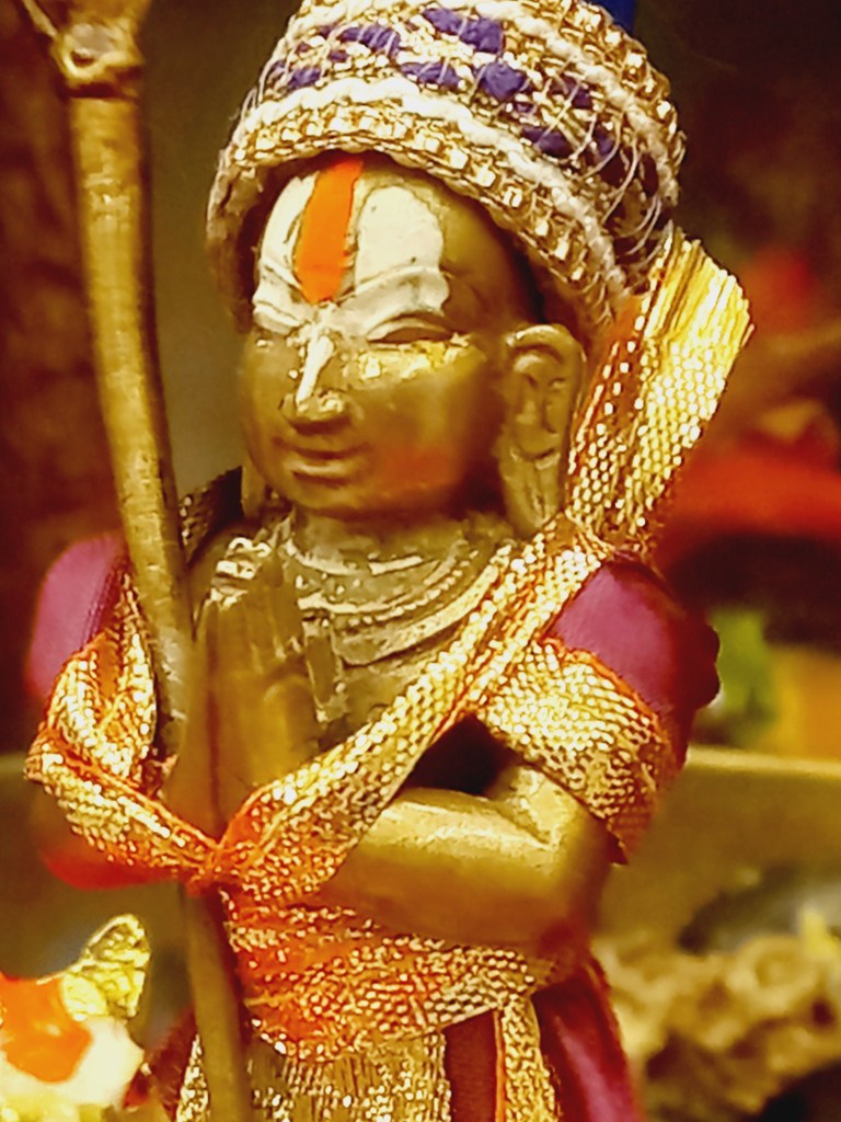 Swami Mudaliandan was the foremost disciple of Swami Ramanuja. Mudaliandaan is considered as being an Avathara of the Lord Rama Himself. Lord Rama was so pleased with Adiseshan’s service to him as Lakshmana that he wanted to serve him in future Avatharas. As a result, He bestowed the Avathara of Balarama to Adiseshan and himself as Krishna. Adiseshan incarnated as Swami Ramanuja , and LORD Rama became his daasan. ( Daasarathe his original thirunamam) .