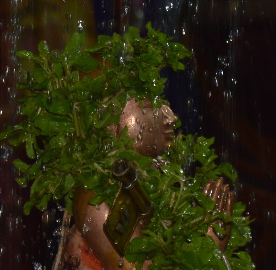 He approached the divine boy who was meditating deeply with his legs crossed and hands in chin mudrai pose. Madhurakavi thought that the boy could be deaf and dumb. To draw his attention ,he took a small stone and threw it in the lotus pond nearby.