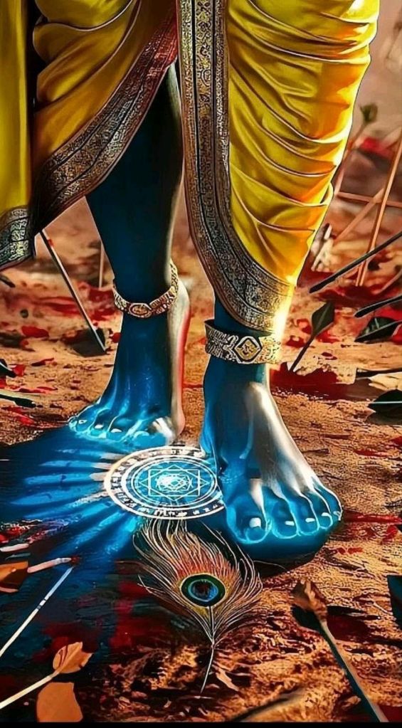 . Yudishtira somehow wanted to delay the lord’s departure for some reason. He submits to Lord humbly and pleads , Oh Lord Krishna! I cannot sit on the throne which is stained by the blood of all my relatives and all my grandsir’s.