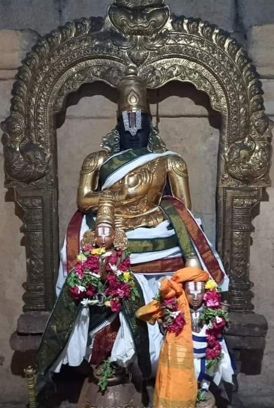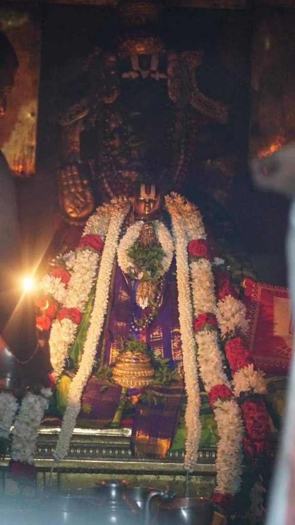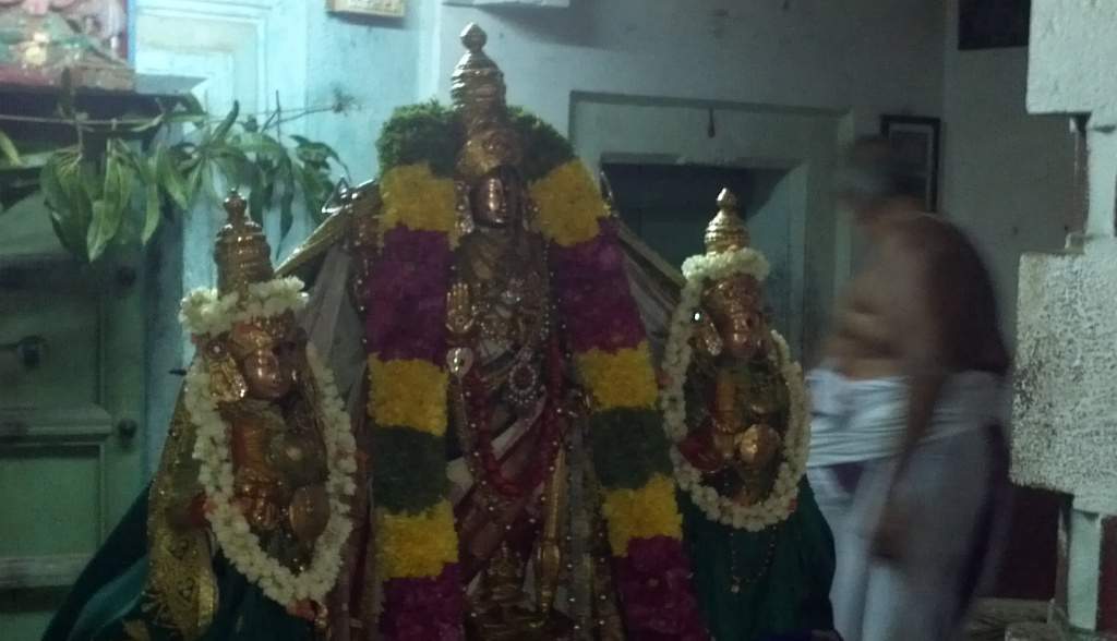 It’s a very old temple and the darshan of Azhwar specifically at this place reveals his liking to this place and his consort . After recitation of the respective pasurams and mangalashashanams , we were offered Chakrapongal prasadam which was honoured . The sweet prasad , the sweet pasurams , the sweet crowd and our SWEET AZHWAR was indeed most memorable night .