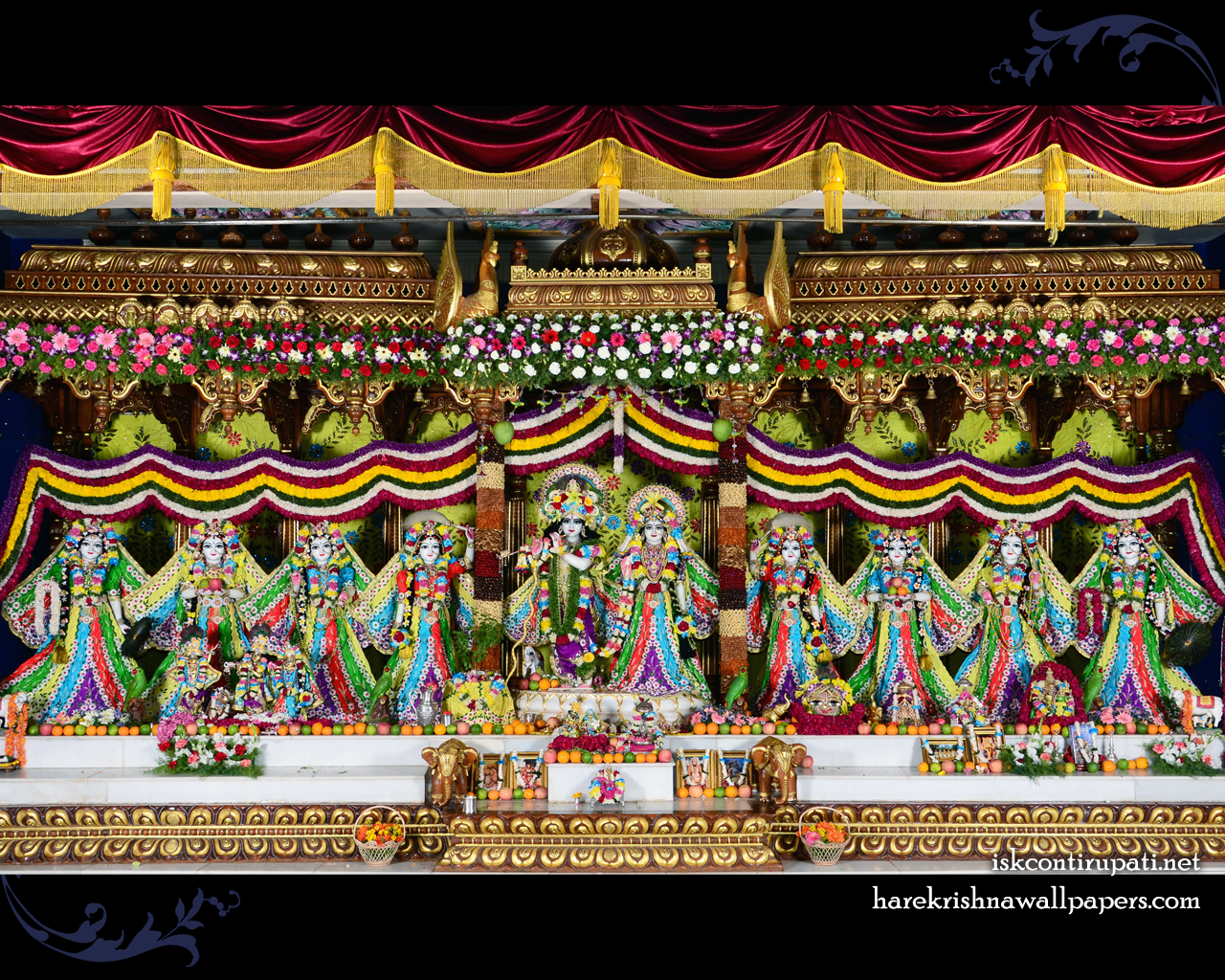 Lord Krishna’s queens Rukmini and Satyabhama also give darshan inside the temple. The Deity of Sri Chaitanya mahaprabhu also gives darshan to the devotees .