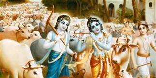 As mentioned earlier, Krishna lived in Gokulam,Nandgaon and Vrindavan upto HIS 10th age and later moved to Mathura and then to Dwaraka. In Vrindavan, Krishna used to go out with HIS friends to gaze calves and return in the evening. Azhwars and many devotees have beautifully described about these pastimes in their works.
